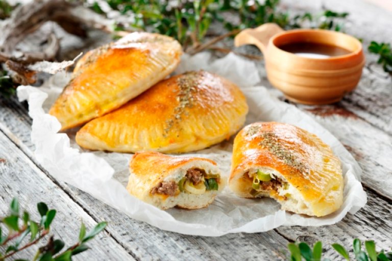 Pensle pirogene med sammenvispet egg. Strø gjerne på litt oregano til pynt. Stek på 220 °C i 10-12 minutter.